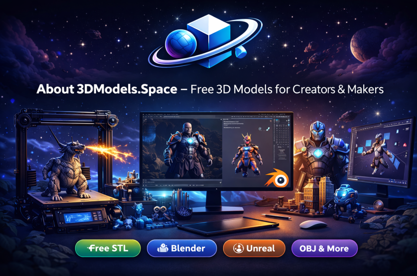 At 3DModels.Space, our mission is simple: make high-quality 3D models accessible to everyone — designers, game developers, 3D printing enthusiasts, and digital creators worldwide. We provide a growing library of 20,000+ free 3D models including STL files for 3D printing, Blender characters, Unreal Engine assets, OBJ files, and more. Every model is carefully organized to help you download, design, and create faster. Whether you're printing a detailed miniature, building a game environment, or creating cinematic renders, our platform gives you ready-to-use 3D assets optimized for performance and quality. 🚀 What You’ll Find on 3DModels.Space: Free STL files for 3D printing (PLA, ABS, Resin) Game-ready assets for Unreal Engine Blender character models and rigs OBJ, FBX and 3DS Max compatible files Weekly updated collections We believe creativity should be accessible. That’s why most of our models are available for free download, while we also recommend trusted tools, printers, and software to help you bring your ideas to life.